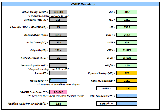 Plugging these numbers, plus Greinke’s expected mBB rate of 63, into the beta version of the xWHIP 2.0 calculator…