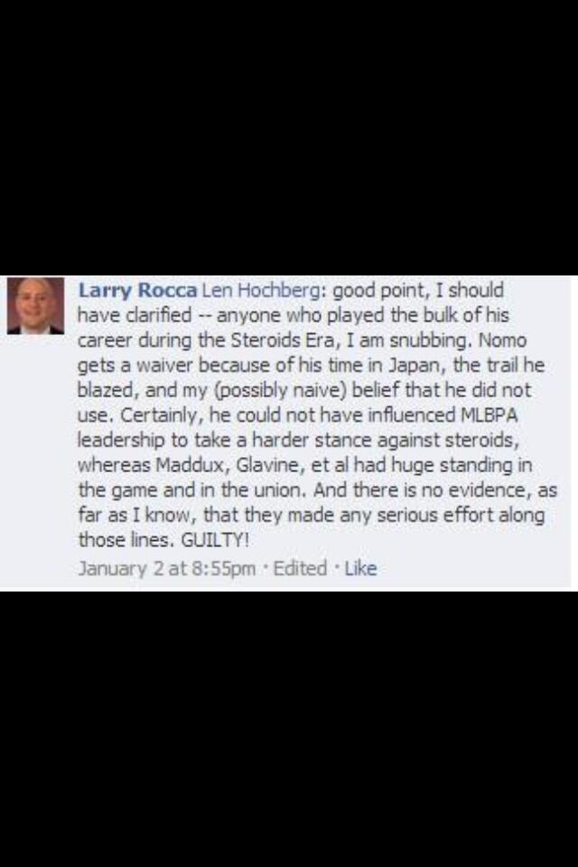 So what gives? Well, today Rocca came out and attempted to explain himself. First, regarding the steroid era comment, he says he doesn’t think Nomo took steroids. Why? He has a “possibly naive” belief, in his own words. Ok, that’s … pretty shallow analysis.